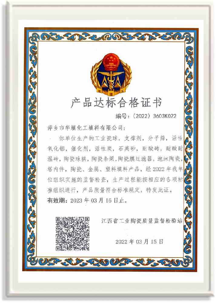 萍鄉市華填化工填料有限公司,位于320國道、109國道、浙贛鐵路、昌金高速公路貫穿其中,交通便利,是江西西部一顆燦爛明珠,創建于20世紀70年代初期,是中國石油天然氣股份有限公司“能源一號網”會員企業、中國石化物資采購電子商務網絡和中國海洋石油總公司采辦業務系統成員單位,是上海大學江西材料基因組工程產業研究院工業陶瓷產業創新聯盟基地,且通過ISO9001:2015質量管理體系、ISO14001:2015環境管理體系、ISO45001:2018職業健康安全管理體系認證的化工填料生產企業。公司擁有陶瓷、塑料、金屬填料、催化劑、活性氧化鋁、分子篩等產品生產線,現有固定資產3616萬元,占地面積3.8萬平方米。公司具有悠久的生產歷史、雄厚的技術力量和先進的生產工藝設備,可生產工業瓷球(支撐劑)、陶瓷、金屬、塑料質的規整、散堆化工填料及分子篩、催化劑、生化濾料、活性氧化鋁、石化助劑、活性炭、環保材料、耐火材料等系列的200多種規格型號產品。